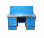 Двухтумбовый. Допустимая нагрузка на столешницу 1000 кг. Опорные элементы выполнены сварными из холоднокатаной стали. Для выполнения сборочных, ремонтных, слесарных, монтажных и других видов работ на производстве, в сервисных центрах, мастерских, гаражах, а также для обучения технологии в учебных заведениях. Комплектуется полкой-стенкой, расположенной под столешницей для удобного размещения габаритного инструмента и оснастки. Размеры верстака: 855x1596x696 мм. Вес: 126 кг. Поставляется в 4 комплектациях на выбор.