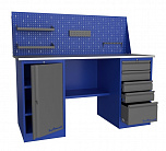 Двухтумбовый. Допустимая нагрузка на столешницу 1000 кг. Опорные элементы выполнены сварными из холоднокатаной стали. Для выполнения сборочных, ремонтных, слесарных, монтажных и других видов работ на производстве, в сервисных центрах, мастерских, гаражах, а также для обучения технологии в учебных заведениях. Комплектуется полкой-стенкой, расположенной под столешницей для удобного размещения габаритного инструмента и оснастки. Размеры верстака: 855x1596x696 мм. Вес: 116 кг. Поставляется в 4 комплектациях на выбор.