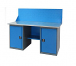 Двухтумбовый. Допустимая нагрузка на столешницу 1000 кг. Опорные элементы выполнены сварными из холоднокатаной стали. Для выполнения сборочных, ремонтных, слесарных, монтажных и других видов работ на производстве, в сервисных центрах, мастерских, гаражах, а также для обучения технологии в учебных заведениях. Комплектуется полкой-стенкой, расположенной под столешницей для удобного размещения габаритного инструмента и оснастки. Размеры верстака: 855x1596x696 мм. Вес: 120 кг. Поставляется в 4 комплектациях на выбор.