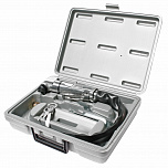 Ножовка пневматическая для резки различных материалов. Скорость вращения: 3500 об/мин. Ширина пропила: 4.5 мм. Размер воздушного штуцера: 1/4”. Масса инструмента: 920 гр. Длина: 190 мм. Рабочее давление : 90PSI Расход воздуха: 4 CFM Толщина резки: - Толщина среза: железо 2.0 мм., нержавеющая сталь 1.5 мм. Габаритные размеры: 210/170/50 мм. (Д/Ш/В) Вес: 1000 гр.
