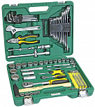 Набор инструментов 1/4" & 1/2" 6-гранный (в кейсе) 85 предметов. В наборе: головки торцевые 1/4", головки с насадкой HEX 1/4", головки с насадкой TORX 1/4", головки с шлицевой насадкой 1/4", головка с насадкой PH 1/4", насадки PZ 1/4", головки торцевые 1/2", свечная головка 1/2", насадка 5/16 HEX 1/2", насадки 5/16 TORX 1/2", насадки 5/16 PH 1/2" для ударной отвертки PH3, PH4, насадки 5/16 PZ 1/2", держатель бит: 1/2х5/16, трещотка 1/4 36 зубцов (резиновая ручка), удлинитель 1/4 50 и 100мм, кардан 1/4", вороток-отвертка 1/4", вороток 1/4" с плавающей головкой, гибкий вал 1/4", трещотка 1/2 36 зубцов, удлинитель 1/2" 125 и 250мм, кардан 1/2", переходник 3/8х1/2 с отверстием, ключи рожково-накидные.