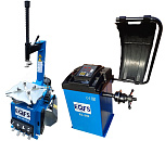 Комплект TS-24 Станок шиномонтажный. Полуавтоматический. Квадратный стол. Для дисков: внешний 11÷21”, внутренний 12÷24”.  Усилие отрыва покрышки 2700 кг. В комплекте: пистолет для подкачки шин + монтажка + пластиковые накладки на зажимные кулачки + регулятор давления с влагоотделителем и манометром. + TS-450 Балансировочный станок (без лазера) Для дисков: 10–24” (254÷609 мм). В комплекте: кожух с автозапуском + клещи + кронциркуль + быстрозажимная гайка + набор конусов.