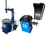 Комплект из полуавтоматического шиномонтажного стенда TS-21, для колёс 99% автопарка России. Для дисков: 11÷20”. В комплекте: пистолет для подкачки шин + монтажка + пластиковые накладки на зажимные кулачки + регулятор давления с влагоотделителем и манометром. + TS-550 Балансировочный станок (с лазером) Для дисков: 10÷24” (254-609 мм). В комплекте: кожух с автозапуском + клещи + кронциркуль + быстрозажимная гайка + набор конусов.
