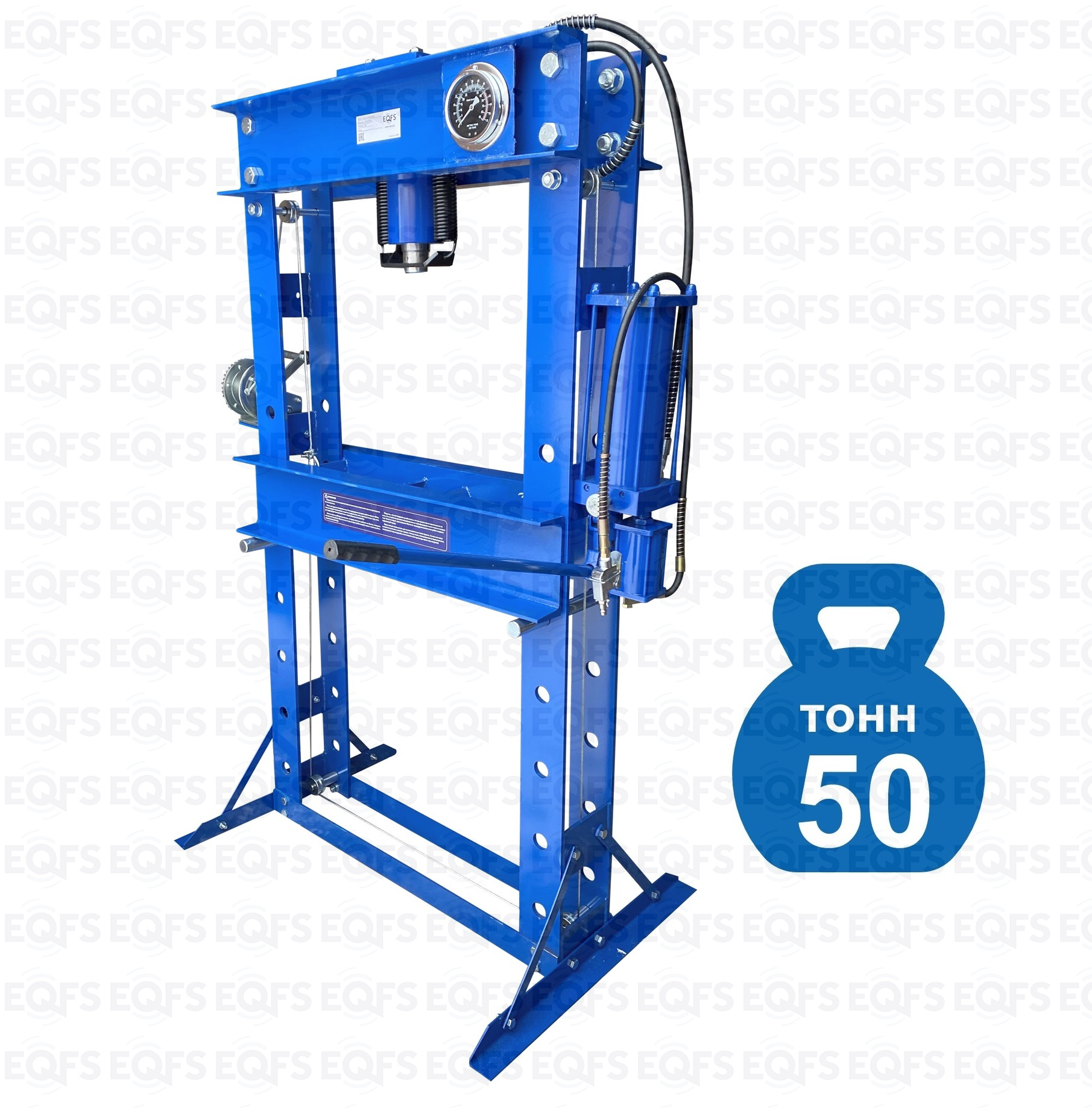 · Пресс укомплектован гидравлическим ручным насосом и пневмогидравлическим с максимальным усилием 50 тонн.
