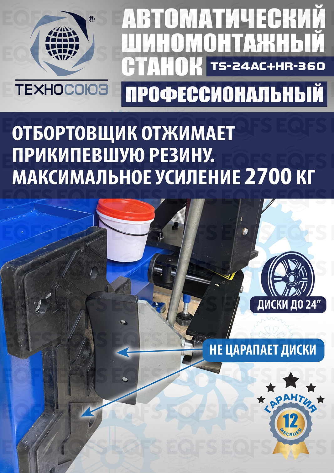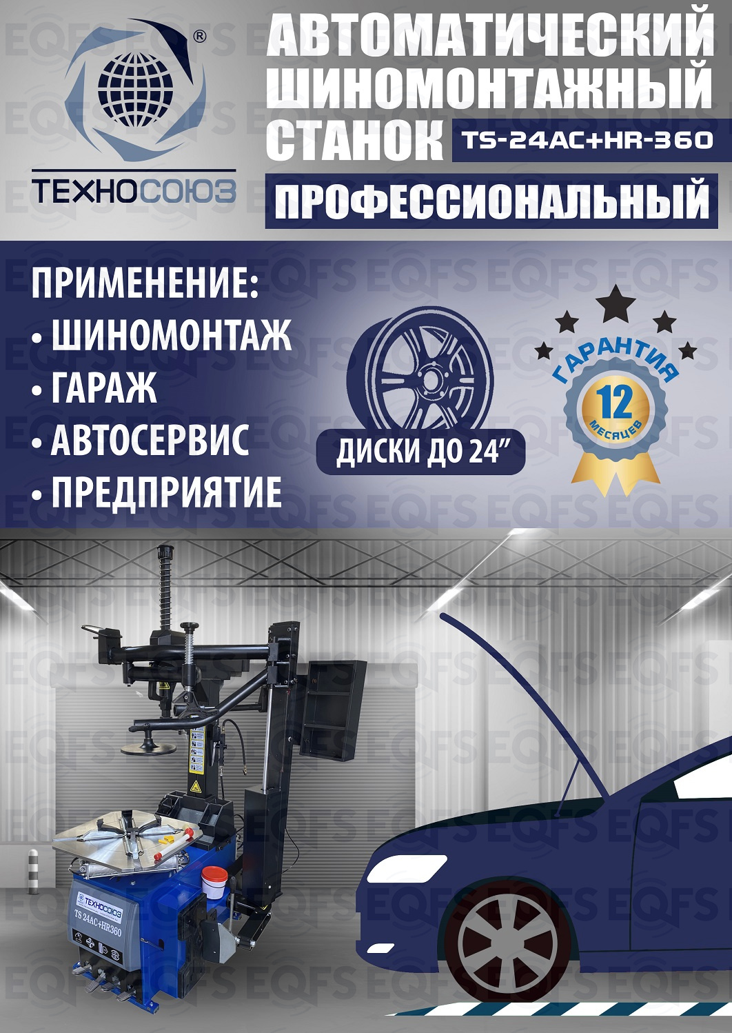 Автоматического шиномонтажного стенда TS-24AC+HR-360. В комплекте взрывная подкачка + третья рука для работы с низкопрофильными шинами и RanFlat! Для колес легковых автомобилей, легких грузовиков, микроавтобусов и коммерческой техники. Для дисков: внешний 10÷21”, внутренний 12÷24”. Напряжение 220/380В. Гарантия 18 мес. – наш монтаж, 12 мес. – самостоятельная установка.