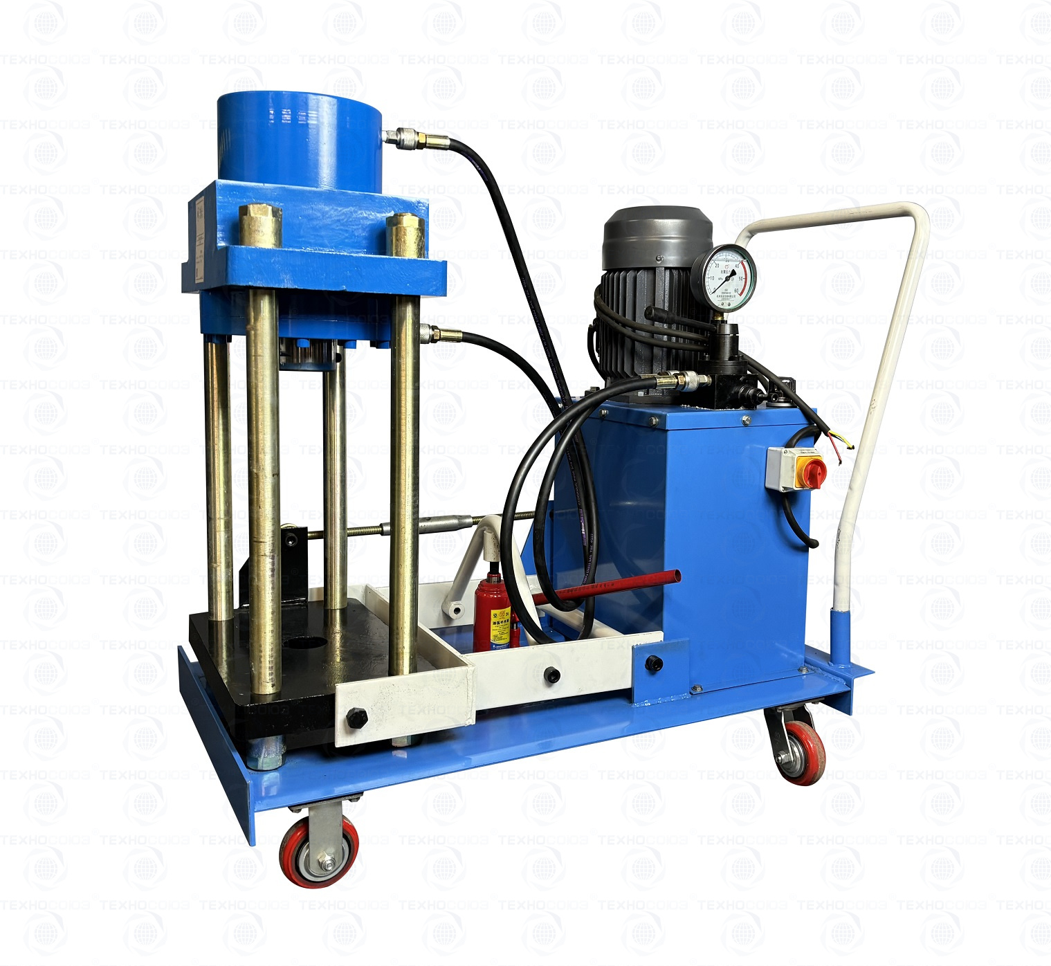 Надежные прорезиненные колеса позволят перемещать шкворнедав по любой поверхности