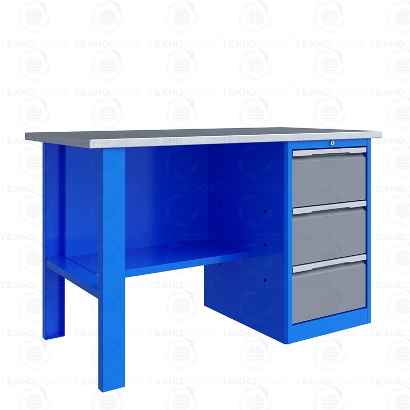 Однотумбовый. Допустимая нагрузка на столешницу 750 кг. Опорные элементы выполнены сварными из холоднокатаной стали. Для выполнения сборочных, ремонтных, слесарных, монтажных и других видов работ на производстве, в сервисных центрах, мастерских, гаражах, а также для обучения технологии в учебных заведениях. Комплектуется полкой-стенкой, расположенной под столешницей для удобного размещения габаритного инструмента и оснастки. Размеры верстака: 855x1396x696 мм. Вес: 76 кг. Поставляется в 4 комплектациях на выбор.